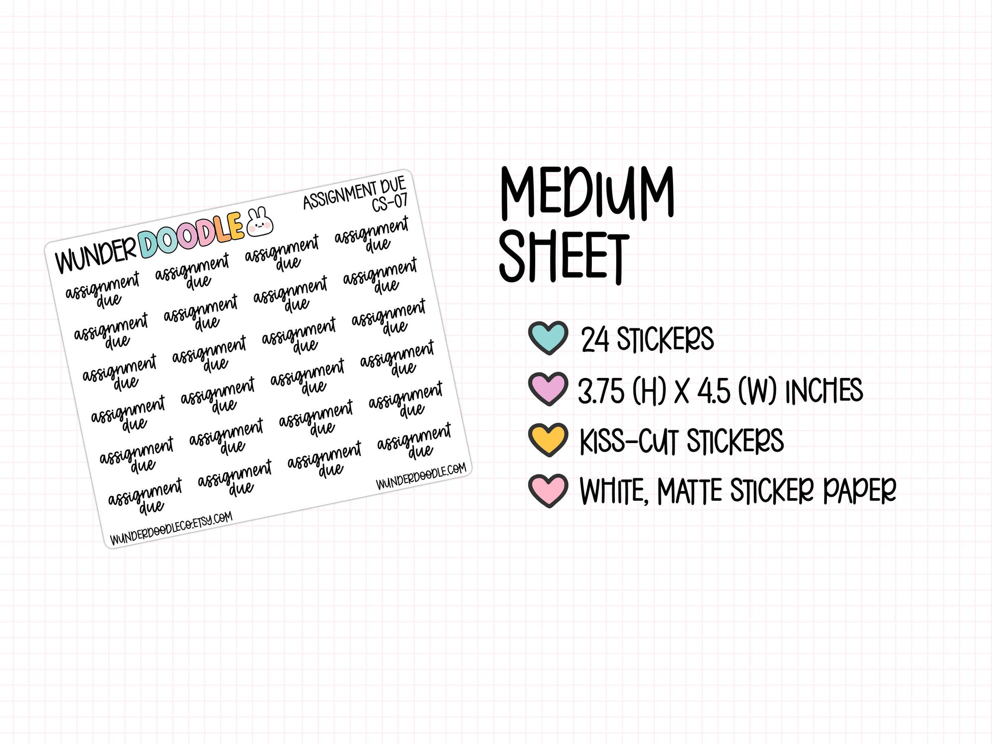 Each sheet comes in your choice of large, medium, or mini sizes, packed with stickers printed on smooth, white matte paper. They’re not repositionable, so plan wisely—once they’re down, they’re committed (kind of like you should be to that deadline). Whether you're drowning in essays, reports, or term papers, these stickers are here to keep you on track. Grab a sheet now and turn your planner into the ultimate homework battle station!
