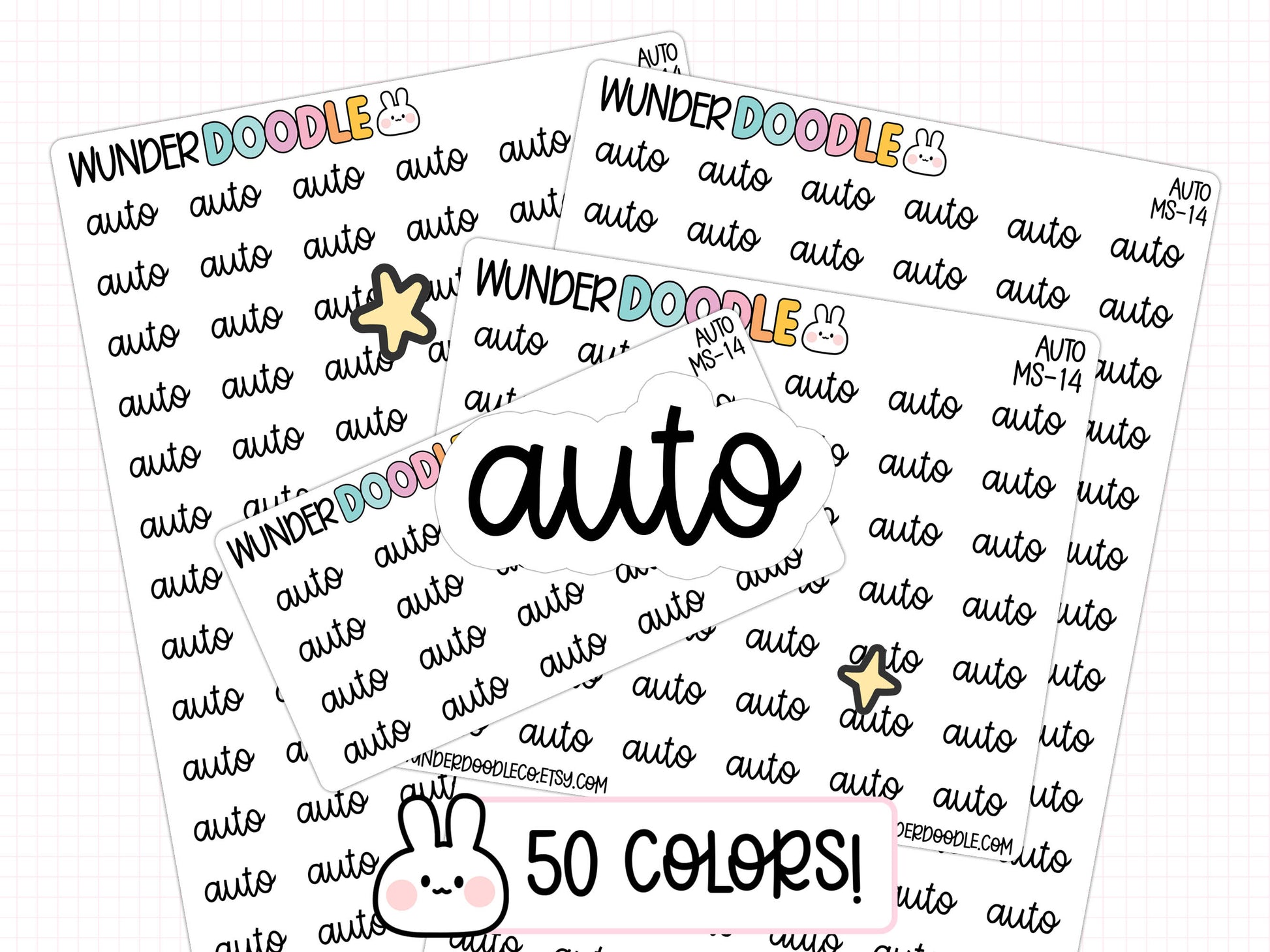 Got a car payment due? Slap an "auto" sticker in your planner and never let those sneaky due dates catch you off guard again. These tiny but mighty auto planner stickers are perfect for marking your car loan, insurance, or anything vehicle-related with just a glance. With 50 colors to choose from, you can match your aesthetic, color-code your finances, or just pick your favorite shade for fun. Printed on crisp white matte sticker paper, these stickers stay put—no peeling and re-sticking here.