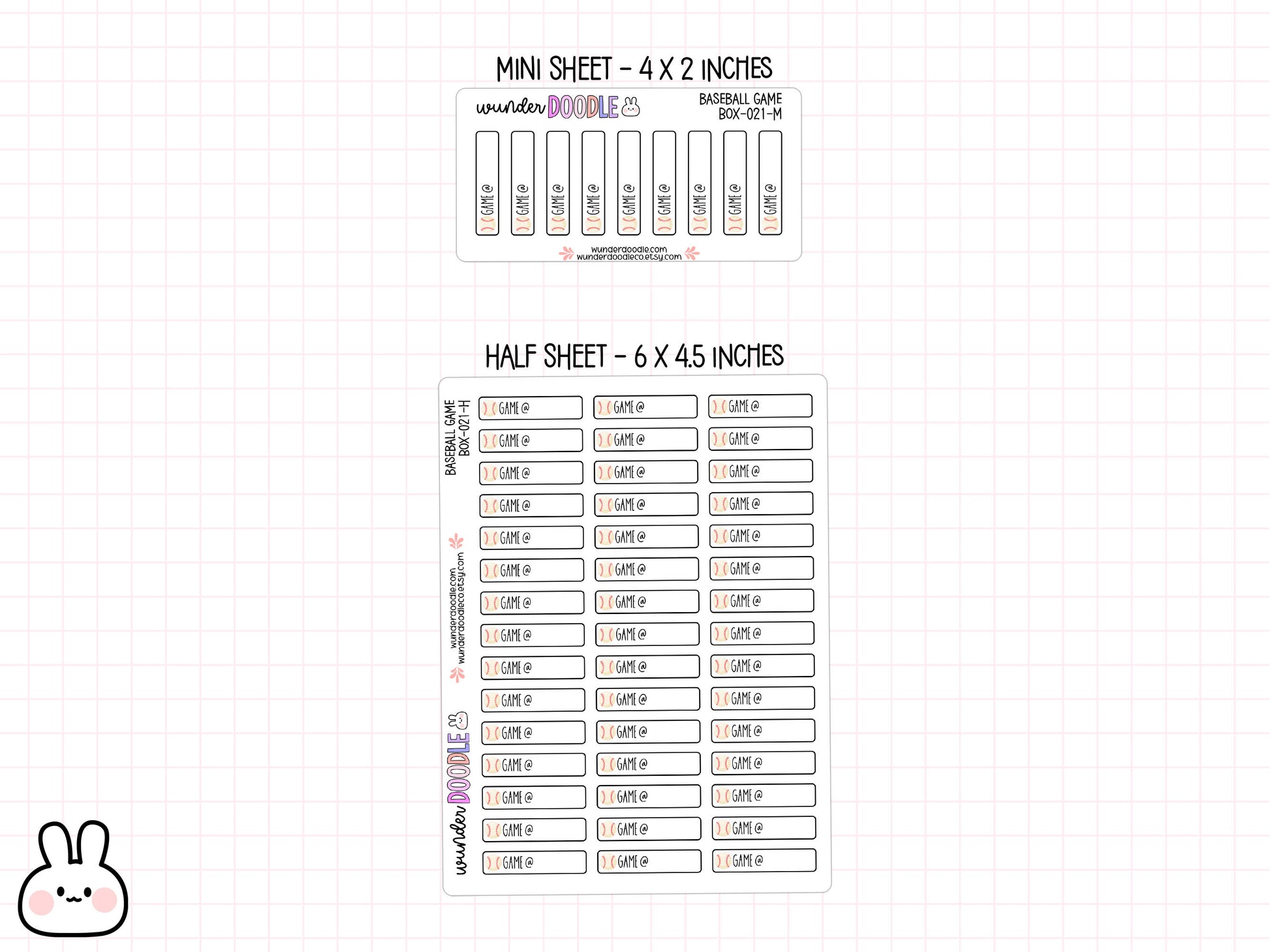 🎉 Hey there, baseball fans and planner enthusiasts! Get ready to knock it out of the park with our Baseball Game Planner Stickers! These little gems are perfect for marking those can’t-miss game days in your planner. Each sticker features a neat box with a cute baseball icon and just the right amount of space to jot down the game time—because let's be real, missing the first pitch is not an option! Measuring 1.25 inches wide by 0.31 inches tall, these stickers fit like a glove in any planner layout. Available in half sheet (6 x 4.5 inches) and mini sheet (4 x 2 inches) sizes, these stickers are the MVP of your planning game. ⚾