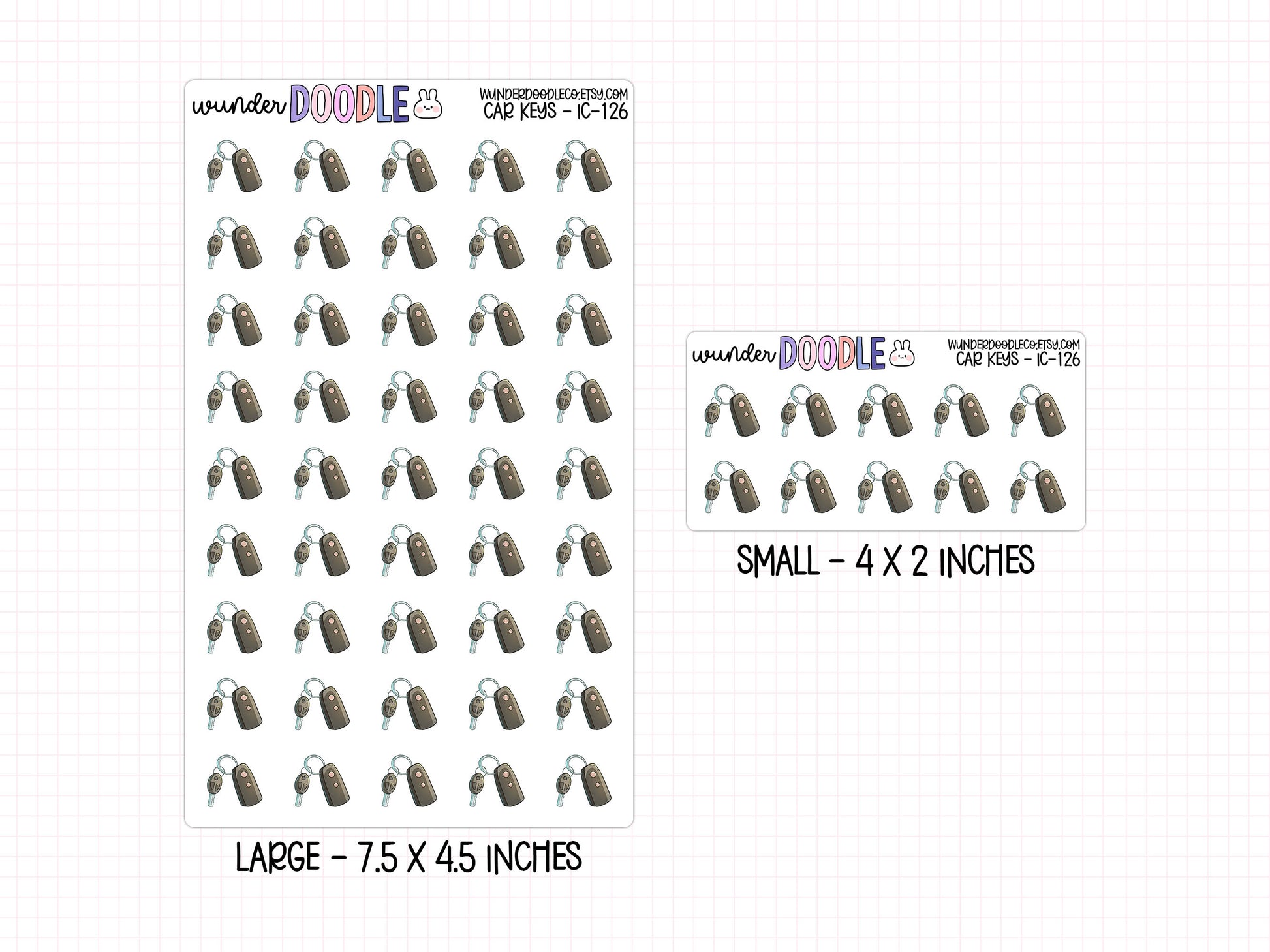 Choose from two handy sheet sizes: the large 7.5 x 4.5-inch option for all your sticker-hoarding needs or the compact 4 x 2-inch sheet when you’re keeping it light. These car key stickers are functional, fun, and ready to jazz up your planner, calendar, or journal with a touch of everyday whimsy. Ready to drive your organization game up a notch? Grab your sheet now and never misplace your plans!