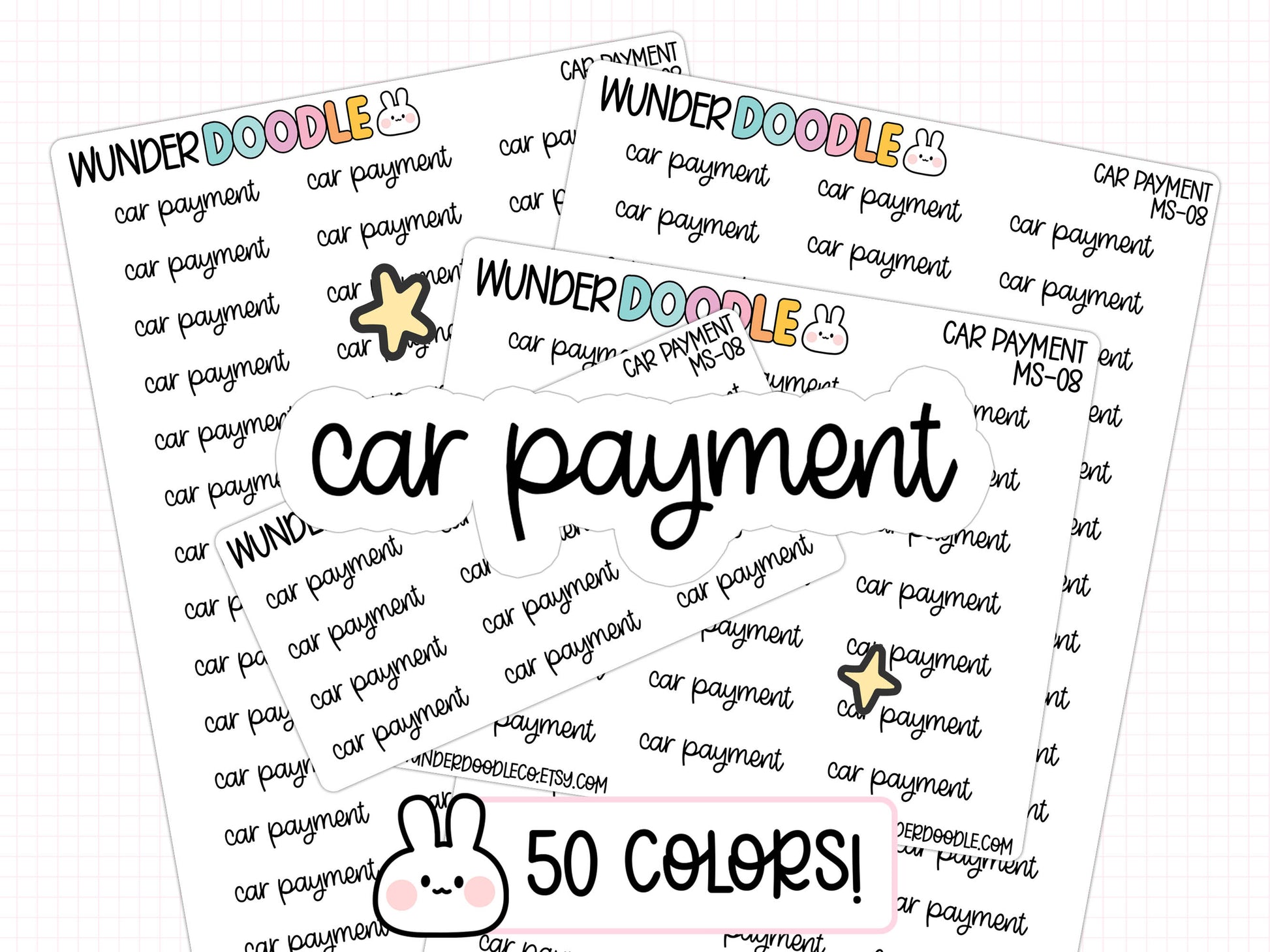 Hey there, budget boss! Keep your car payment front and center with these sleek and functional Car Payment planner stickers. Whether you're a financial wizard or just trying to remember when that pesky bill is due, these stickers make tracking your payments a breeze. Measuring 1.14 inches wide by 0.35 inches tall, they're the perfect size to fit in any planner, journal, or budgeting spread. With 50 colors to choose from, you can color-code your payments, match your aesthetic, or just pick your favorite shade—because even bills deserve a little flair.