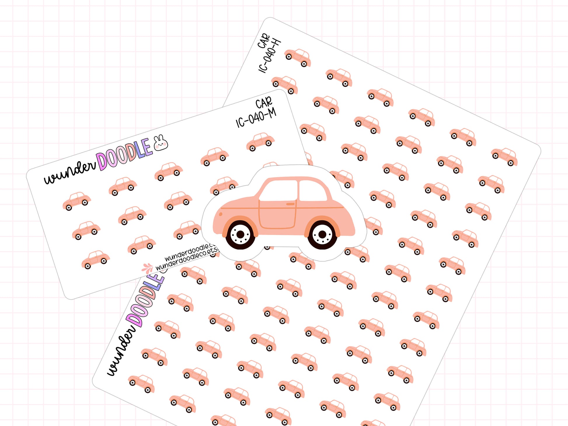 🚗 Ready to rev up your planner game? Our adorable pink car planner stickers are here to drive you straight to organization station! Whether you're planning your errands, tracking your commutes, or just need a cute way to mark that road trip, these little icons are the perfect way to add some vehicular flair to your spreads. Each tiny car is just 0.5 inches wide, making them the ideal size to fit snugly in your planner without taking up too much room. And with two sheet sizes to choose from, you'll have plenty of these cuties to keep your plans on track!