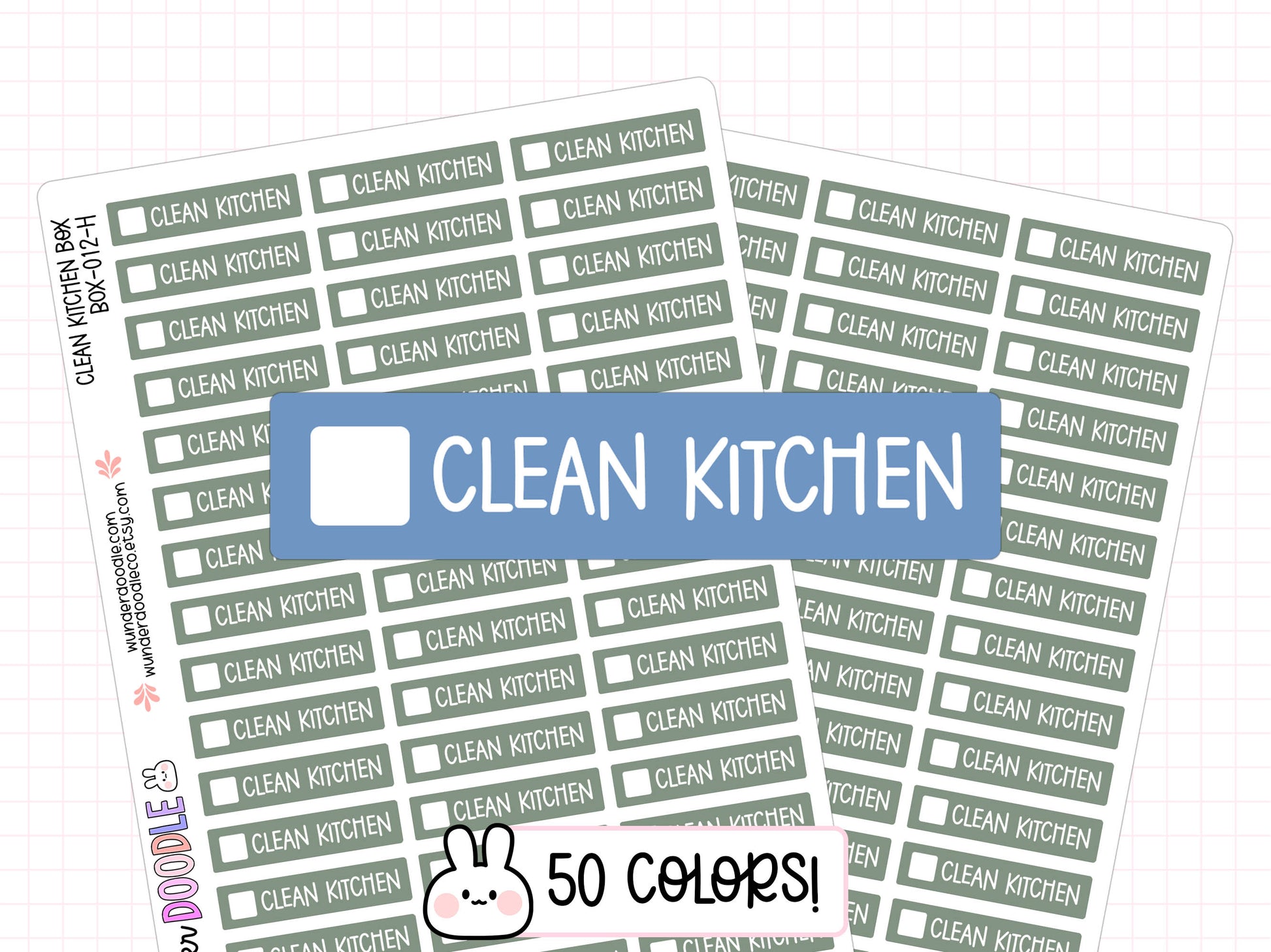 🎉 Hey there, clean freaks and neat freaks alike! 🧼 Ready to tackle that kitchen chaos? Our Clean Kitchen planner stickers are here to give you that extra nudge (and satisfaction) you need to keep your cooking space spotless. Each sticker is a cute little box with "Clean Kitchen" and a checkbox to tick off once you've conquered the crumbs and wiped down those countertops. Measuring at 1.26 inches wide by 0.29 inches tall, they're perfectly sized to fit your planner without hogging all the space. Plus, with 40 vibrant colors to choose from, you'll never get bored of your cleaning routine! 🌈