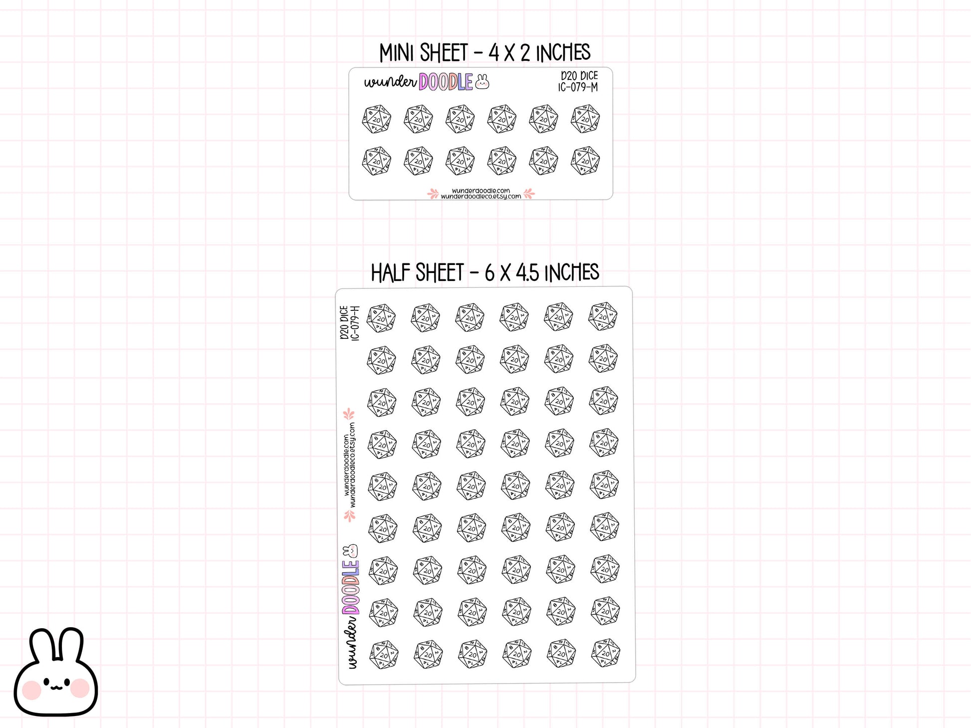 Available in two handy sizesâhalf sheet (6 x 4.5 inches) and mini (4 x 2 inches)âyouâll have plenty of stickers to scatter across your planner like the confetti of victory. Just a heads-up: once you stick these babies down, theyâre staying put! So, get your game face on and grab a sheet (or two) of these delightful d20 planner stickers! đ Letâs make your planner as legendary as your game night.