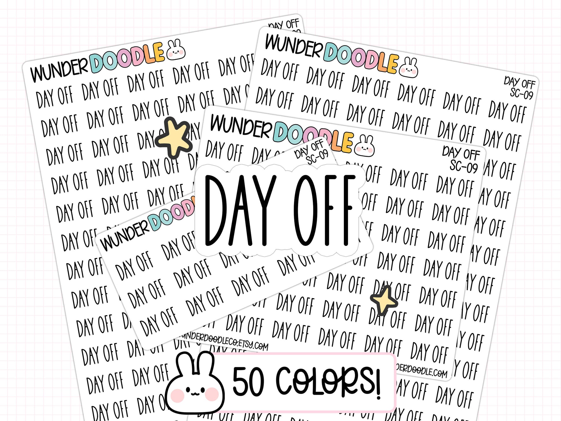 ✨ Take a break, you’ve earned it! These Day Off planner stickers are here to make sure your well-deserved downtime is front and center in your planner. With 50 colors to choose from, you can match your vibe, your mood, or even your favorite pajama set. Each tiny-but-mighty sticker (just 0.65" wide x 0.35" tall!) fits snugly in your planner without taking up too much space—because your day off should be about relaxing, not rearranging your whole layout. Printed on white matte sticker paper, these functional stickers are crisp, clean, and ready to declare your break with style. Just a heads-up: they’re not repositionable, so stick wisely!