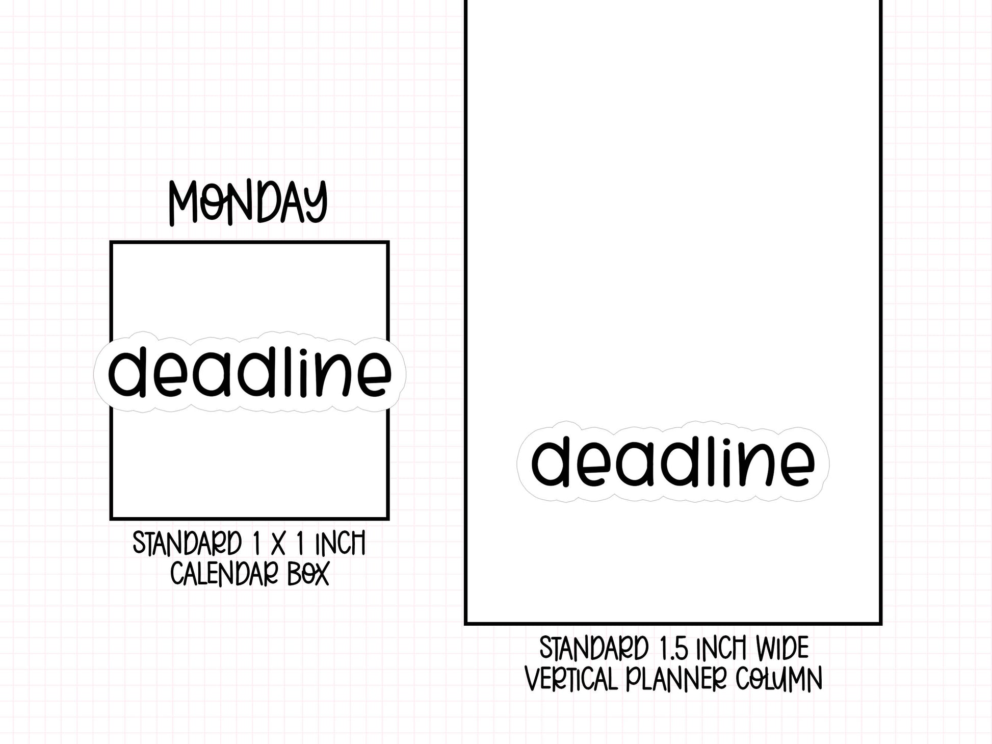 Printed on white, matte sticker paper, these deadline stickers are crisp, clean, and ready for action—but once they’re down, they’re staying put, so plan wisely. No repositioning, no second-guessing, just pure organizational magic. Perfect for students, professionals, or anyone who needs a friendly (or not-so-friendly) nudge to get things done. Ready to turn your planner into a powerhouse of productivity? Pick your colors, choose your size, and grab a sheet today!