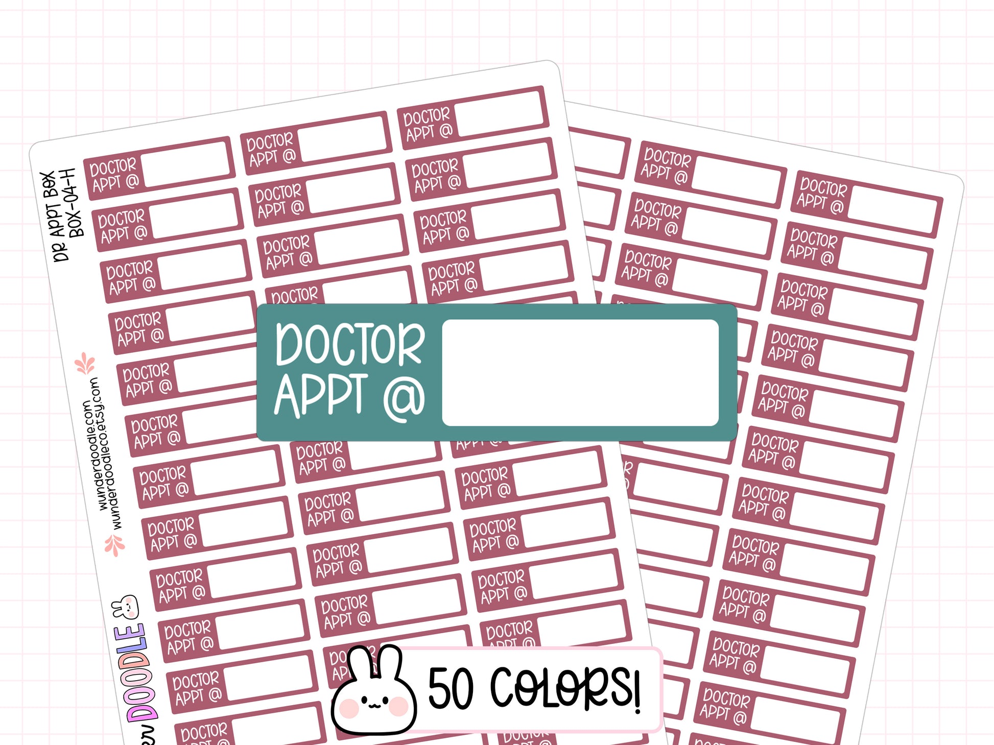 Hey there, busy bee! đ Never forget another doctorâs appointment with these handy-dandy doctor appointment planner stickers! Each sticker is shaped like a neat little box, perfectly sized at 1.25 inches wide, so you can jot down the time and any other notes. With 50 colors to choose from, you can match your plannerâs vibe or go wild with a rainbow of reminders. These beauties are printed on white matte sticker paper, which means theyâre smooth to write on, but a word of warningâtheyâre not repositionable, so stick âem where they belong the first time!