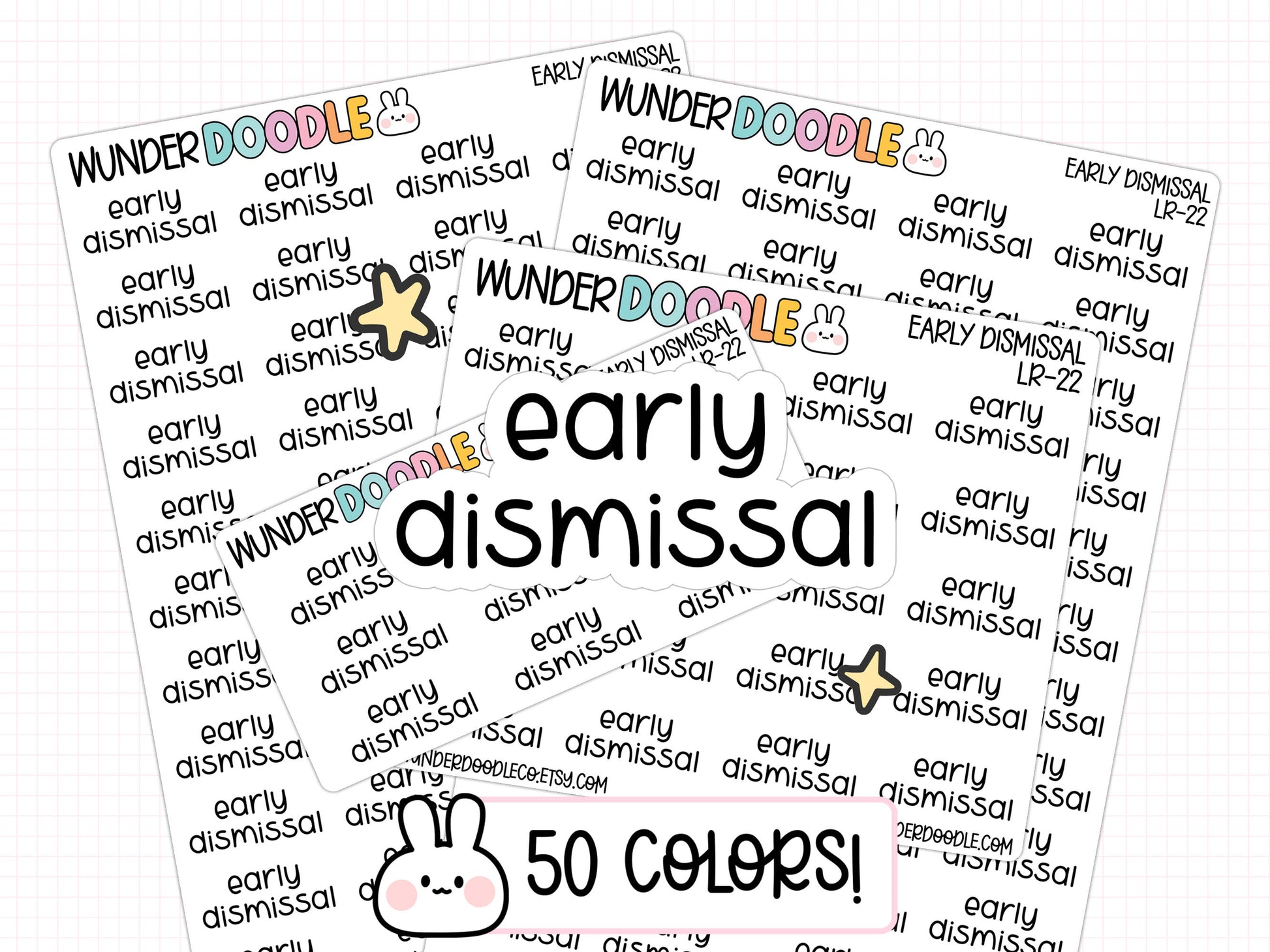 Wave goodbye to last-minute scribbles and hello to effortless planning with these Early Dismissal planner stickers! Perfect for tracking half-days, school pickups, or sneaky afternoon escapes, these functional stickers keep your schedule neat and stress-free. Measuring a tidy 1.02" x 0.45", they fit snugly in any planner, journal, or calendar without taking over the page. With 50 colors to choose from, you can match your aesthetic or color-code like the organized genius you are. Printed on crisp white matte sticker paper, these beauties are here to stay—once they’re down, they’re not budging.