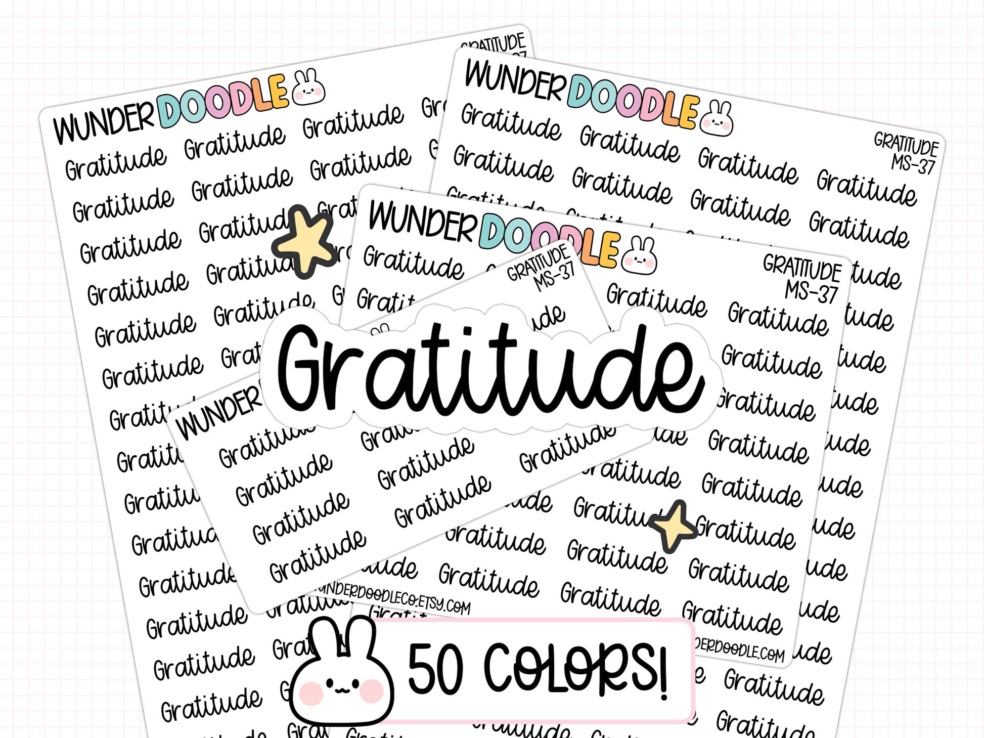 Hey there, gratitude enthusiast! Elevate your planning game with these loopy, cursive "gratitude" planner stickers that’ll add a splash of charm to your pages. Measuring a neat 1.0 x 0.28 inches, these mini reminders are perfect for spreading gratitude vibes throughout your planner, journal, or notebook. With 50 stunning colors to choose from, you can mix, match, and coordinate with your favorite layouts. Just a heads-up: these stickers are printed on white, matte sticker paper and are here to stay—no repositioning, so plan wisely!