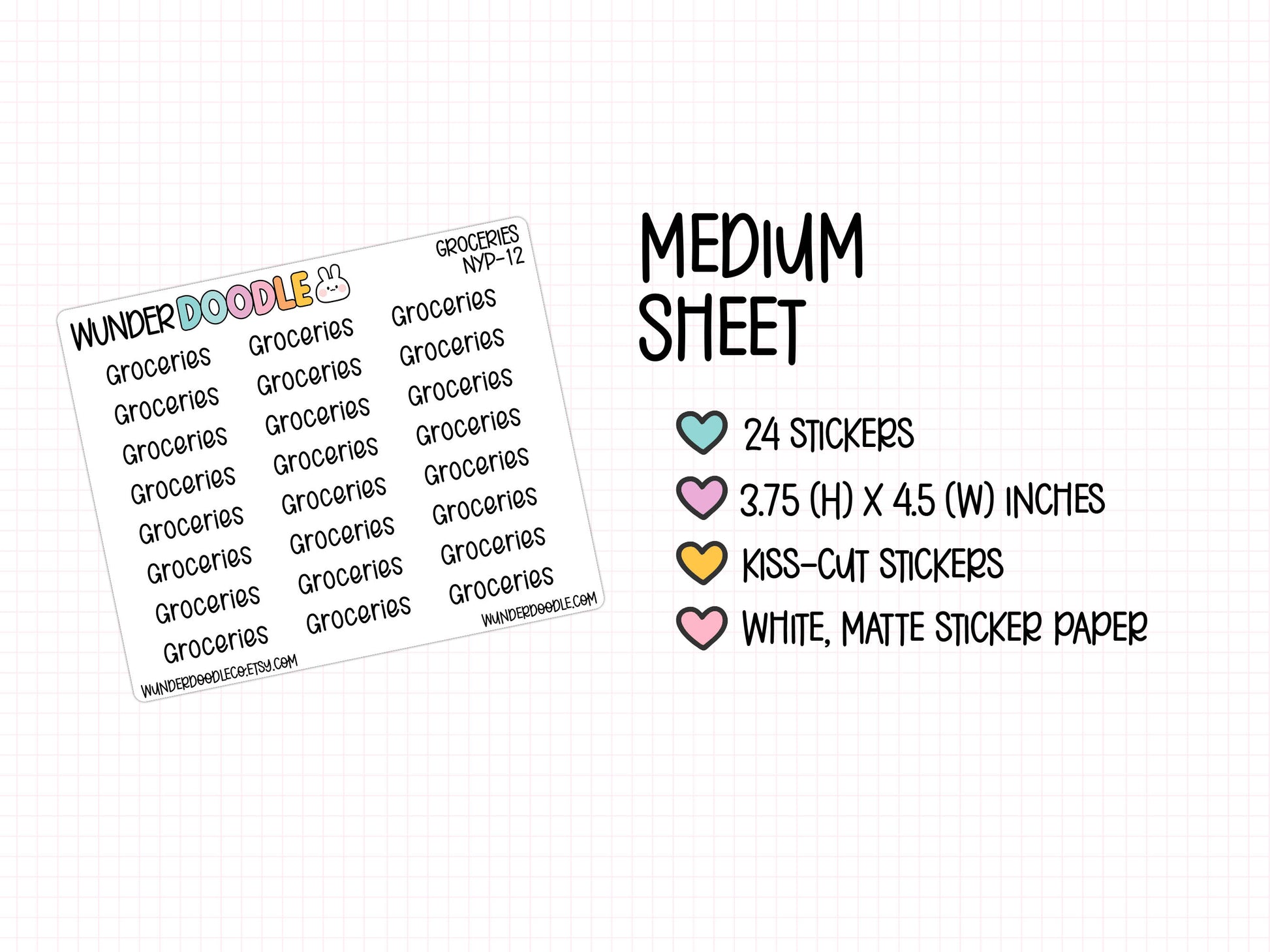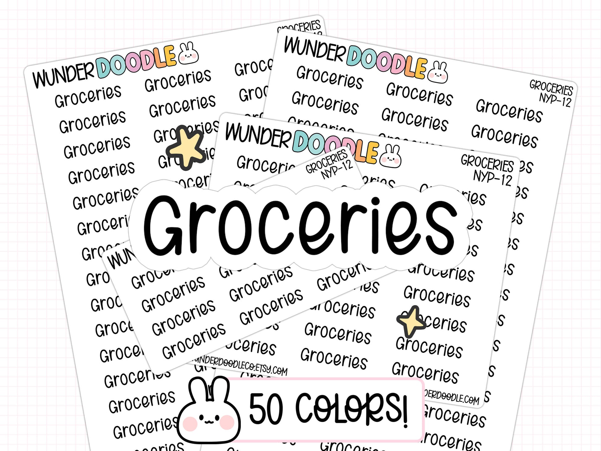 Turn your weekly shopping trip into a planner-perfect moment with these functional "Groceries" planner stickers! With 50 colors to choose from, you can match your grocery runs to your mood, your planner’s aesthetic, or even your snack cravings (because let’s be real—sometimes, grocery shopping is just an excuse to buy more snacks). Each sticker is 1.09" wide x 0.29" tall, making it the perfect size to neatly mark your planner without taking over the whole page. Choose from large, medium, or mini sticker sheets to fit your planning style!