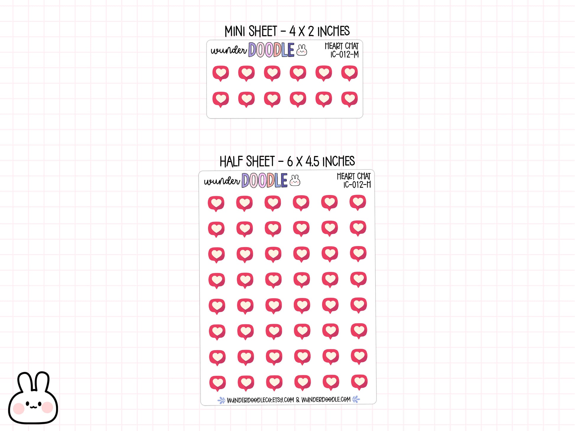 Hey there, planner wizards! ✨ Need a cute way to mark important convos, notes, or just sprinkle a little extra love into your day? Our Heart Chat Bubble Planner Stickers are here to chat! These adorable icons—featuring a chat bubble with a heart inside—are the perfect way to add a pop of personality to your spreads. Each sticker is 0.5 inches wide and 0.49 inches tall, making them compact yet impactful! Choose from half or mini sheets to fit your planner needs, and stick with confidence because these beauties are printed on high-quality white, matte sticker paper.