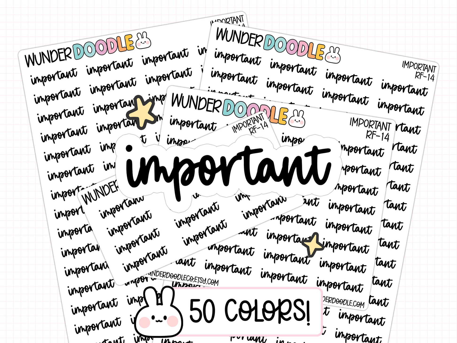 🚨 Got something important to remember? These IMPORTANT planner stickers have your back! Whether it’s a deadline, an appointment, or a reminder to actually drink water, these bold little stickers make sure nothing slips through the cracks. Each one measures 1.01” wide x 0.35” tall—small enough to fit neatly into any planner or journal but big enough to grab your attention. With 50 colors to choose from, you can match your mood, your planner’s aesthetic, or even your level of urgency (we see you, neon red). Printed on white matte sticker paper, these functional stickers stick like a champ—just know they’re not repositionable, so plan wisely!