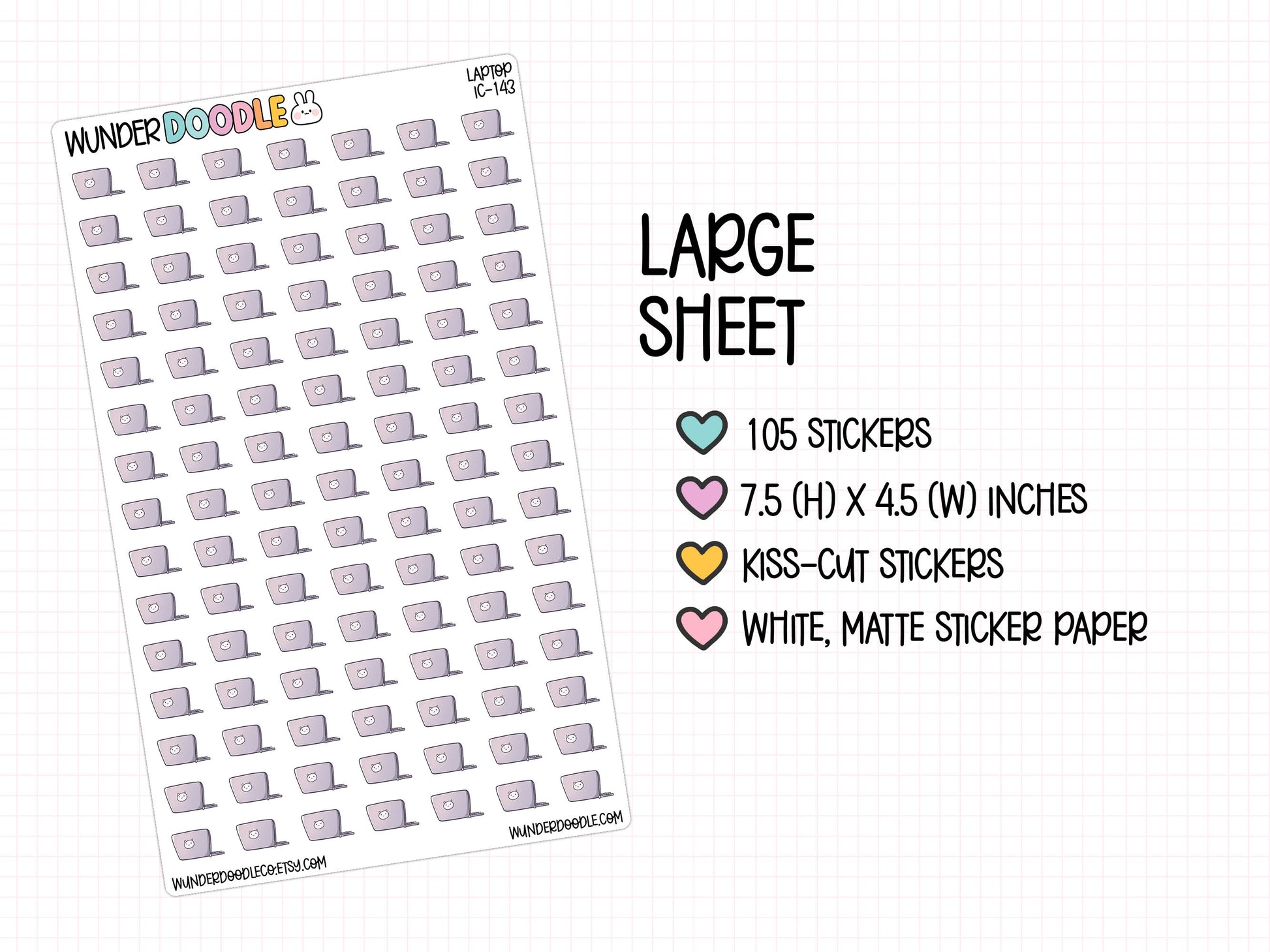 Looking for a fun and efficient way to organize your work schedule and work from home days? Look no further than our Laptop Planner Stickers! These cute kawaii stickers in various sheet sizes are perfect for marking important tasks and events. Available in large, medium, and mini sizes. (Trust us, they're a must-have for any planner!)