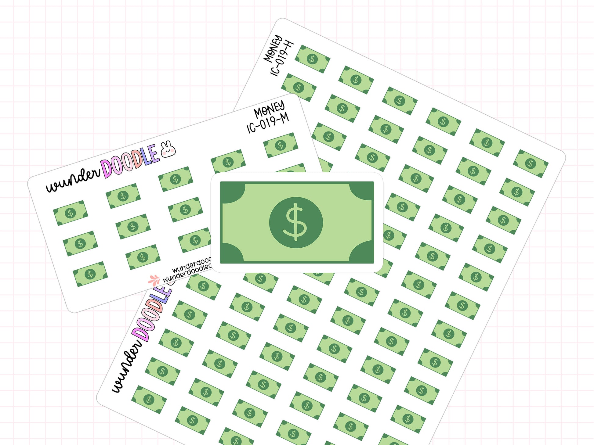 Hey there, budgeting superstar! 💸 Get your finances in order with our money planner stickers, the perfect little icons to keep your dollars in check. Each sticker is a tiny 0.5-inch-wide dollar bill, ready to mark those paydays, budget meetings, or any money-related magic on your planner. Printed on white, matte sticker paper, these babies stick where you put them—no take-backs! Whether you're tracking expenses or just want to add a sprinkle of cash vibes to your pages, these payday stickers are your new best friend.