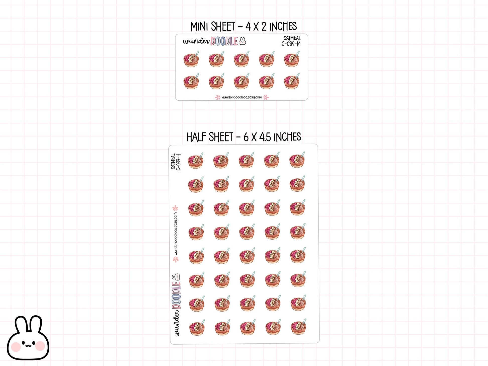 Hey, breakfast lovers! š½ļø Meet the cutest way to celebrate your morning routineāour oatmeal planner stickers! Each sticker features a charming little bowl of overnight oats, perfect for marking meal prep days, breakfast plans, or just giving a shoutout to your fave morning snack. These mini icons are 0.55 x 0.57 inches of pure breakfast joy, printed on crisp white, matte sticker paper (sorry, not repositionable, so stick wisely!). Available in two handy sizes to fit all your planner needs.