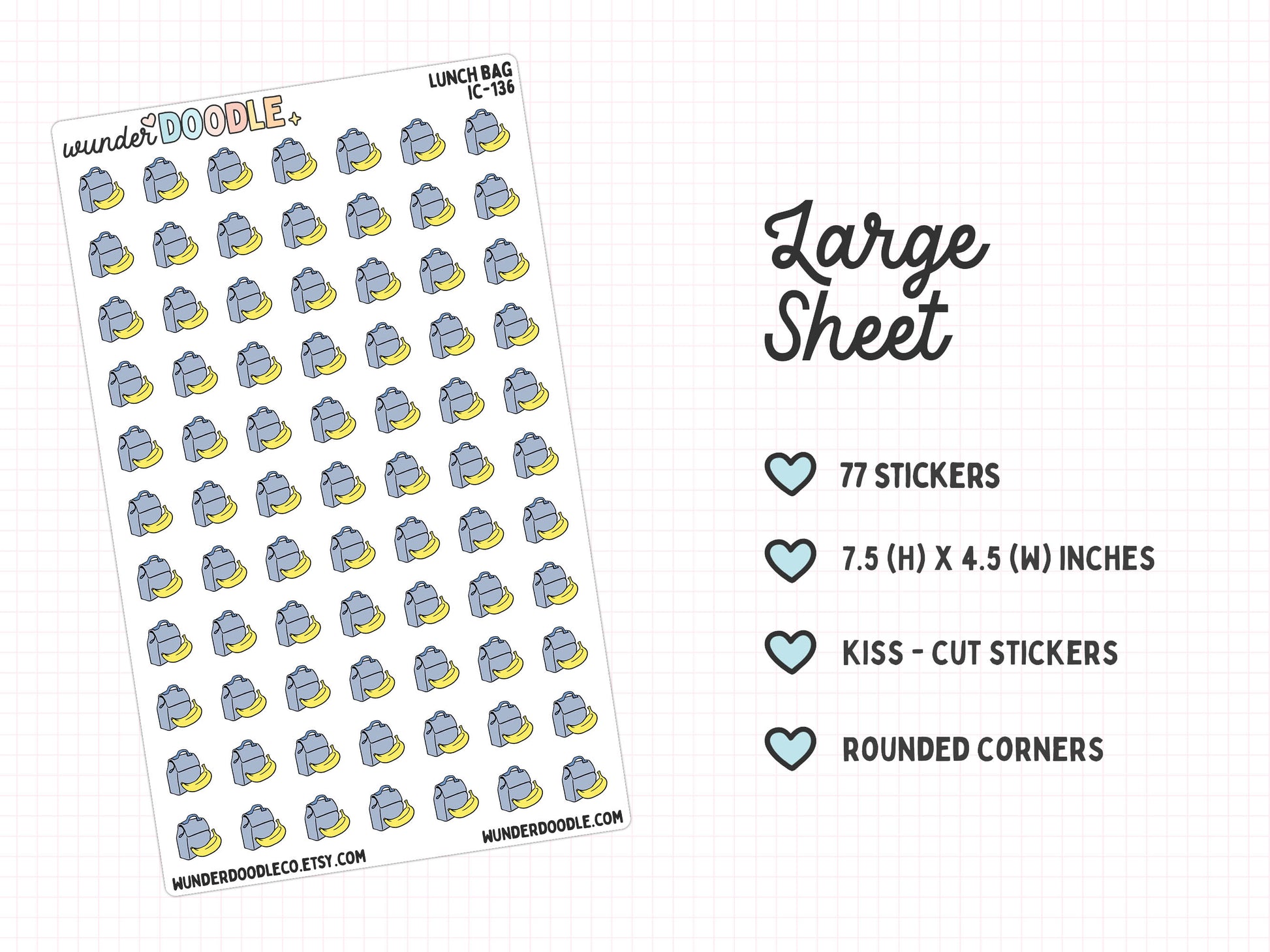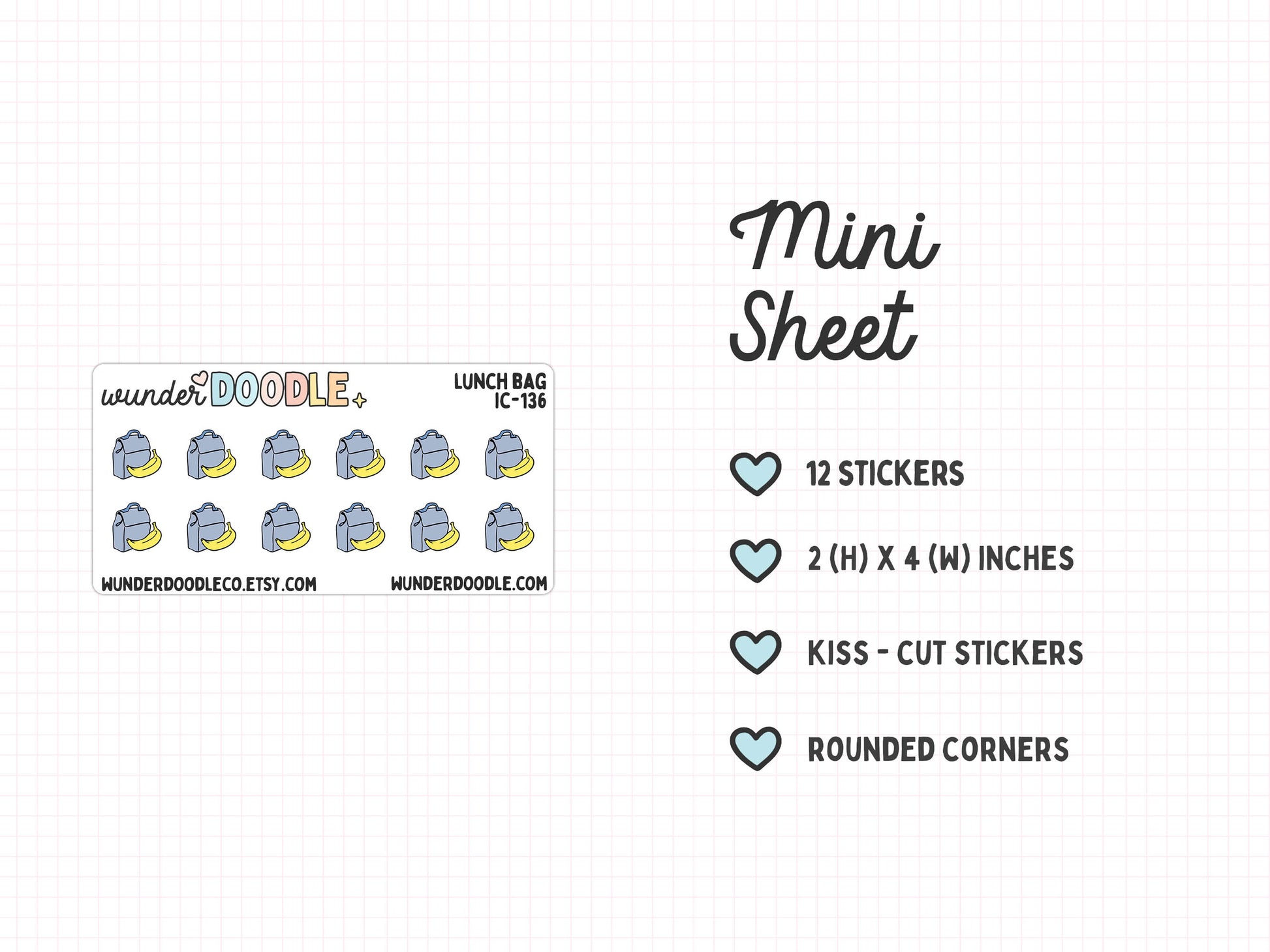 Hey there, busy planner bee! Never forget your midday munchies again with our pack lunch planner stickers. These little lifesavers feature an adorable doodle of a lunch bag complete with a trusty banana, perfect for reminding you to pack those PB&Js or leftover lasagna. Each sticker is 0.5 by 0.5 inches, just the right size to keep your plans neat and tidy while adding a touch of charm. Printed on crisp white matte sticker paper, they’re ready to stick and stay put—no take-backs here. Choose between a large sheet (7.5 x 4.5 inches) for serious snack schedulers or a mini sheet (4 x 2 inches) for those on-the-go planners.