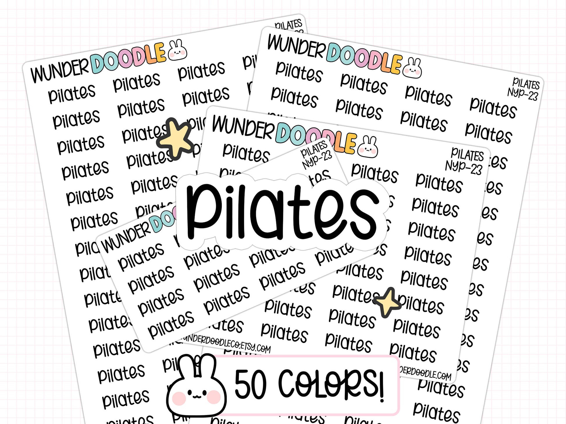 Get ready to stretch your creativity with our dazzling Pilates Planner Stickers, featuring the word "Pilates" in a super easy-to-read font that'll have your planner looking fit and fabulous! Available in a whopping 50 vibrant colors and three handy sheet sizes—large, medium, and mini—these matte white stickers are here to pump some fun into your planning routine. Whether you're logging workouts or just want a pop of color on your weekly spread, these stickers will make you feel like a champ every time you flip to your fitness goals! So why wait? Grab your sheet today and turn your planner into a Pilates paradise!