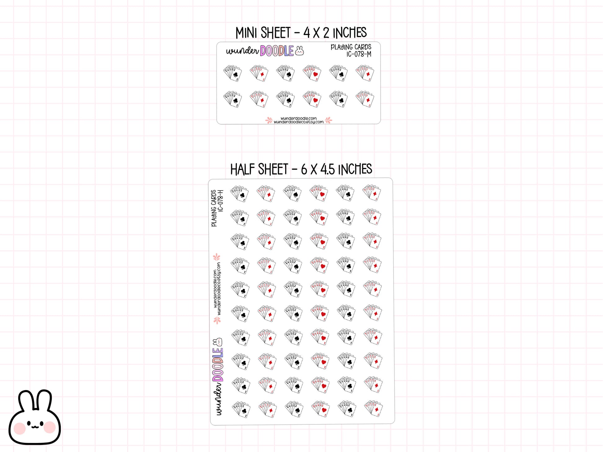 Available in two convenient sizesâhalf sheet (6" x 4.5") for the serious sticker addict and mini sheet (4" x 2") for on-the-go doodlers. They're not repositionable, so make sure you play your cards right the first time! Ready to shuffle some fun into your planner? Grab a sheet and deal yourself in! đâ¨