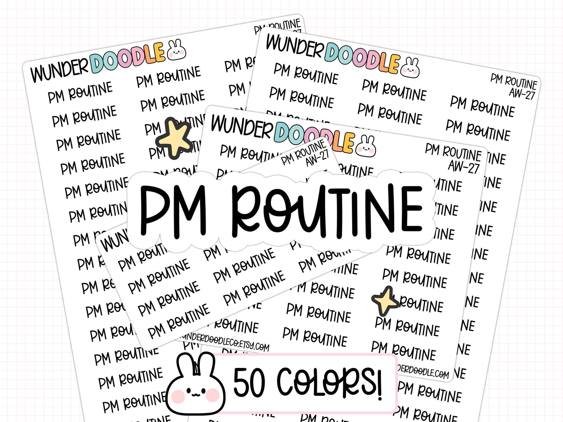 Printed on crisp, white matte sticker paper, these stickers come in large, medium, or mini sheets to fit your sticker stash needs. And while they’re super durable, they’re not repositionable—so stick them wisely! Whether you're a night owl trying to build better habits or just love a good checklist, these PM Routine stickers are here to make planning effortless. Grab a sheet (or three) and start setting up your perfect evening routine today!