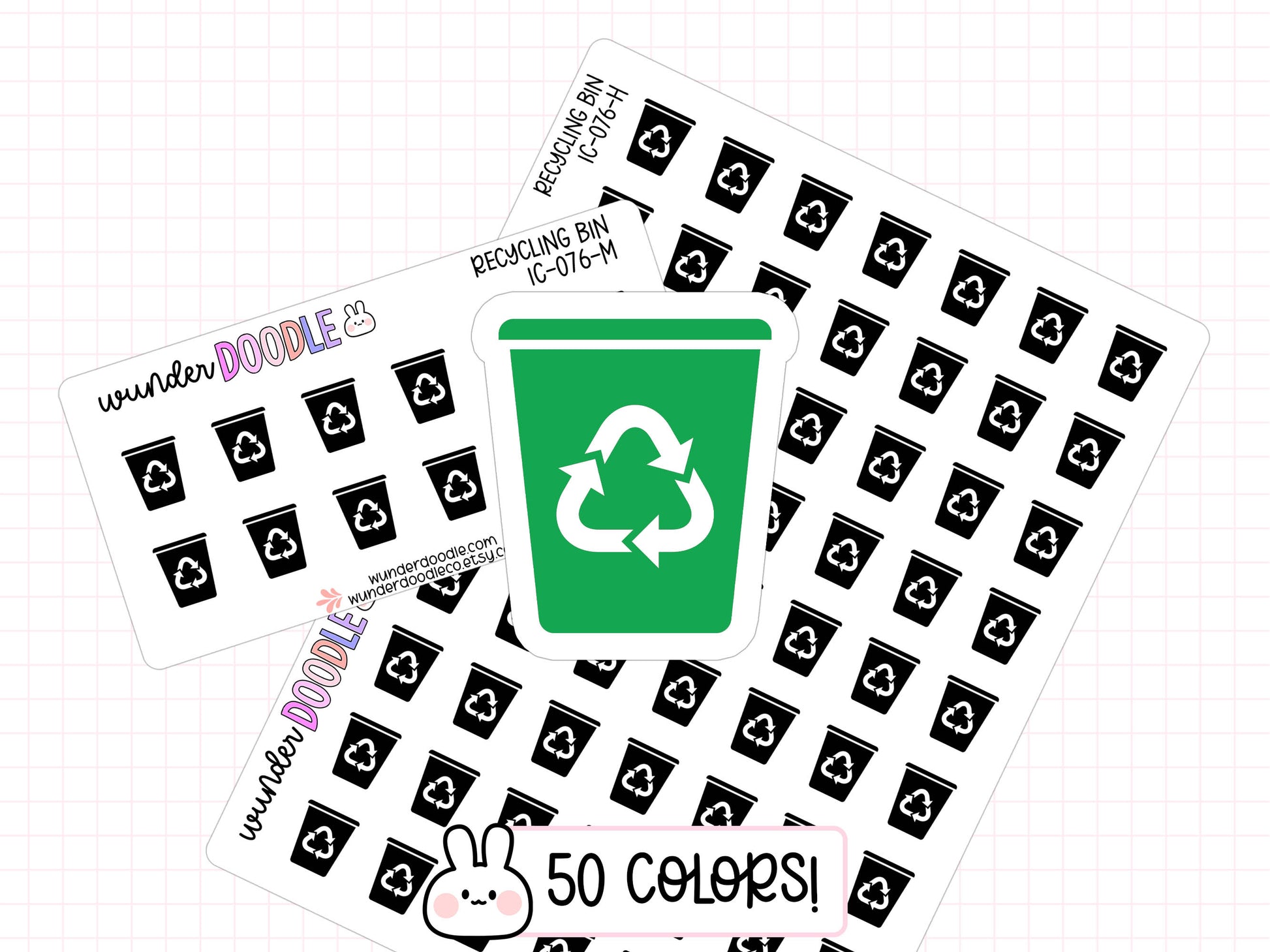 Hey there, eco-warrior! đ Ready to keep your planner looking fab while saving the planet? Meet our recycling planner stickers, the perfect little icons to remind you when it's time to roll out those bins. Each sticker features a cute recycling can icon, perfectly sized at 0.44 inches wide by 0.5 inches tallâjust right to fit in your weekly spread without hogging all the space.