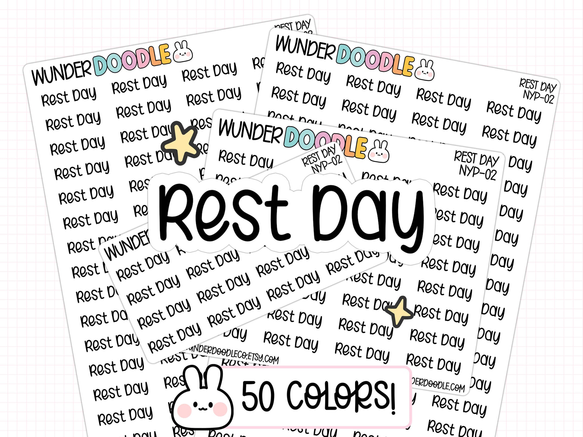 ✨ Hey, planner pals! Need a little reminder to actually take that rest day? These Rest Day Planner Stickers have your back (and your planner). Each tiny-but-mighty sticker spells out "rest day" in a neat 0.9" x 0.3" size, perfect for marking those well-earned breaks. With 50 dreamy colors to choose from, you can match your vibe, your spread, or your mood—whether it's "cozy blanket burrito" or "spa day extravaganza." Printed on white, matte sticker paper, these functional planner stickers are here to stay (literally—no repositioning, so choose wisely).