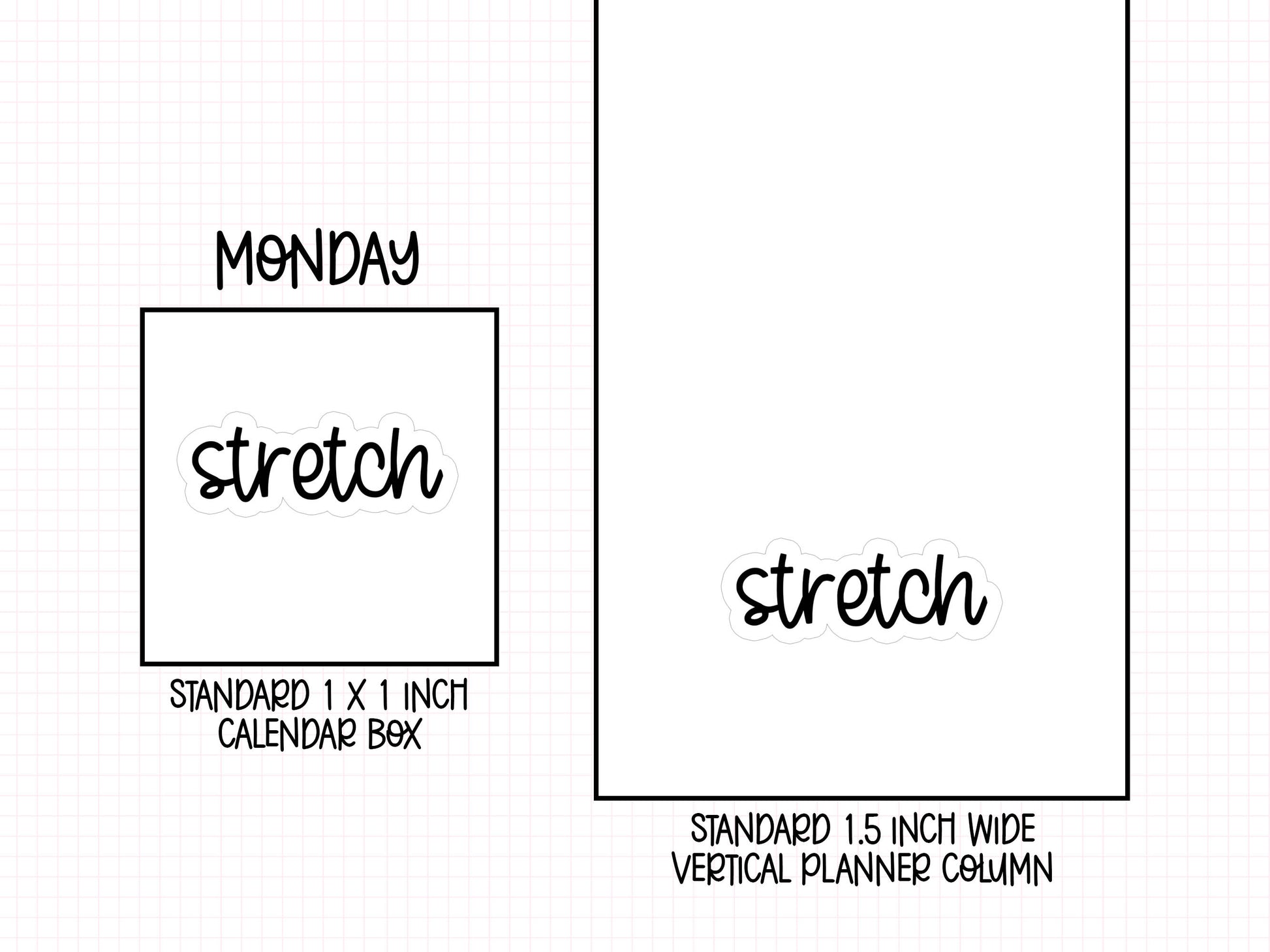 ✨ Time to stretch those plans (literally)! These stretch planner stickers are the perfect way to remind yourself to limber up between all that to-do list conquering. Each sticker features the word stretch in a clean, easy-to-read font—because your body deserves as much attention as your schedule! With 50 fabulous colors to choose from, you can match your vibe, your planner aesthetic, or just go full rainbow mode. These functional stickers are printed on white, matte sticker paper (aka, they won't glare at you while you're trying to focus), and while they’re super sticky, they’re not repositionable—so commit to that stretch!