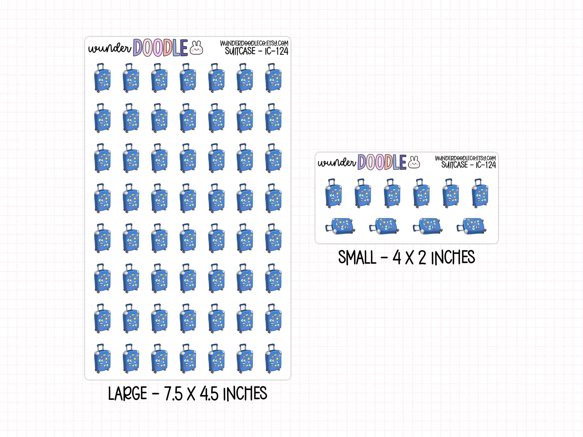 Choose from two sheet sizes to suit your planning needs: the large sheet (7.5 x 4.5 inches) for serious sticker lovers or the small sheet (4 x 2 inches) for compact convenience. Printed on white, matte sticker paper, these designs stick beautifully but aren't the commitment-phobes of the sticker world—once they’re down, they’re staying put. So, what are you waiting for? Add these suitcase stickers to your cart now and let your planner hit the road!
