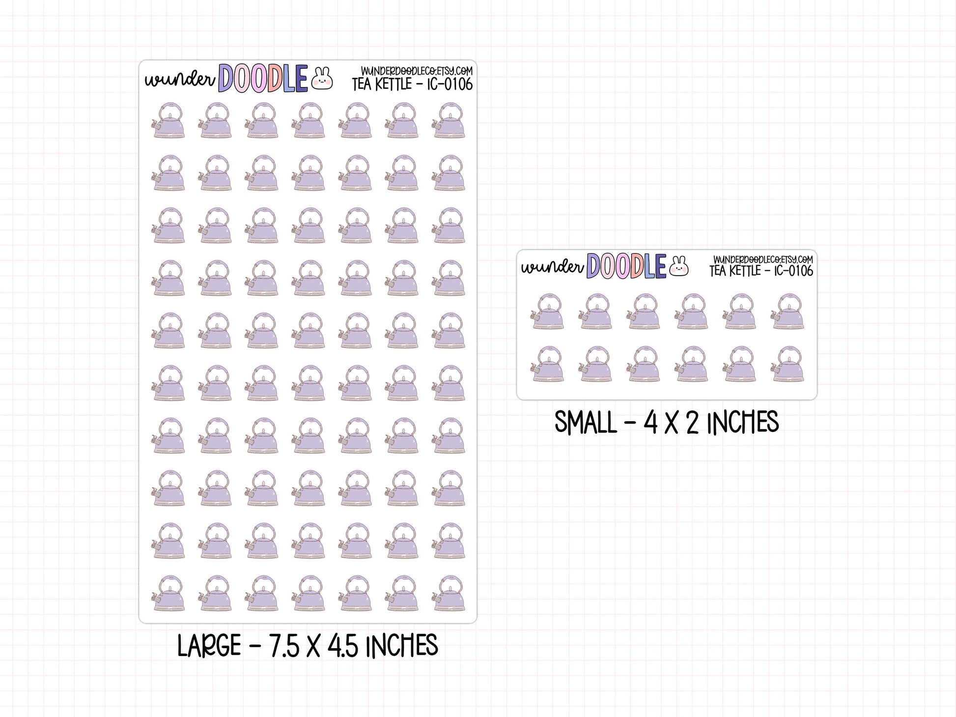 Available in two sheet sizes—large at 7.5 x 4.5 inches and small at 4 x 2 inches—you'll have plenty of options to fit your planner's style. Printed on white matte sticker paper, these cuties aren’t repositionable, so they’re ready to stay right where you place them. Add these tea kettle icons to your planner today and make every sip-worthy moment stand out!