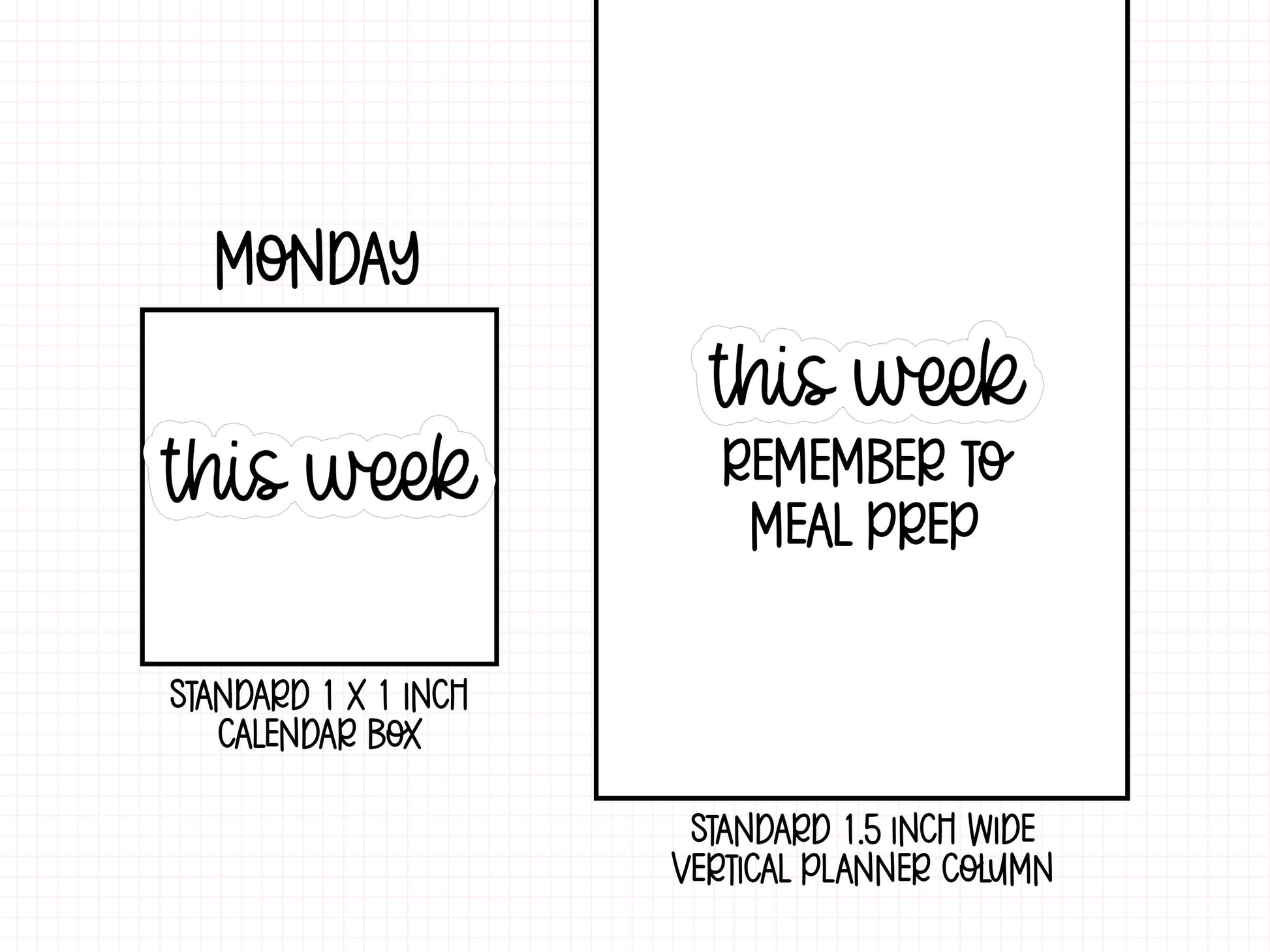 Stay on top of your plans with these This Week planner stickers—because let’s be real, sometimes we need a neon sign (or at least a really cute sticker) to remind us what’s happening. These perfectly-sized stickers measure 1 inch wide by 0.3 inches tall, making them a tidy, stylish addition to your planner, bullet journal, or calendar. With 50 colors to choose from, you can match your aesthetic, mood, or just go wild and mix them up. They come on white, matte sticker paper for a smooth, no-glare finish—because your plans should shine, not your stickers.