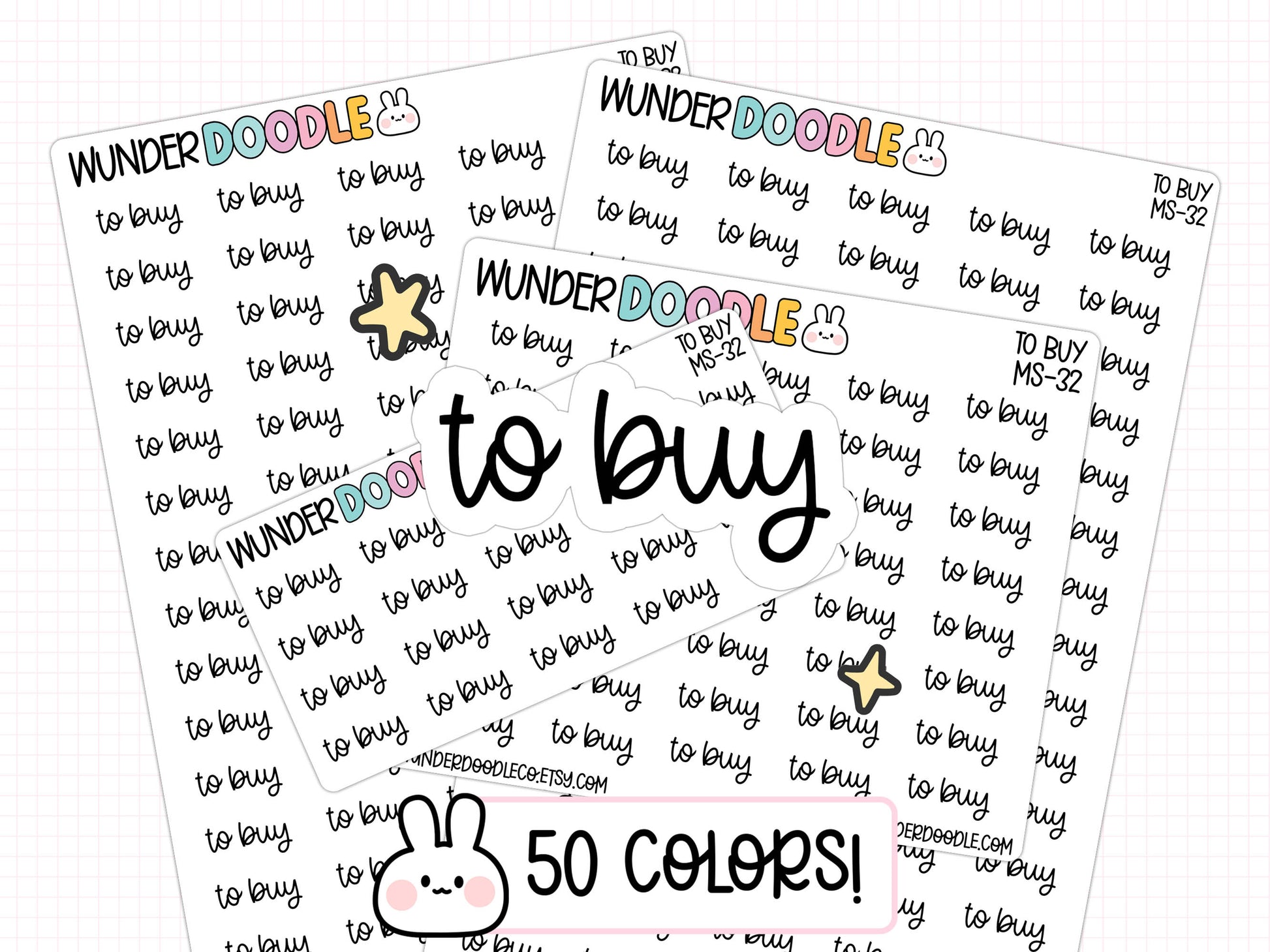 Need a little help wrangling that never-ending shopping list? These "To Buy" planner stickers are here to save the day (and your sanity). Perfect for grocery lists, online shopping reminders, or that ever-growing wishlist of things you definitely need, these functional stickers keep your planner neat, tidy, and oh-so-organized. With 50 colors to choose from, you can color-code your chaos like a pro. Each sticker sheet is packed with crisp, white matte stickers that aren’t repositionable—so once they’re down, they mean business.