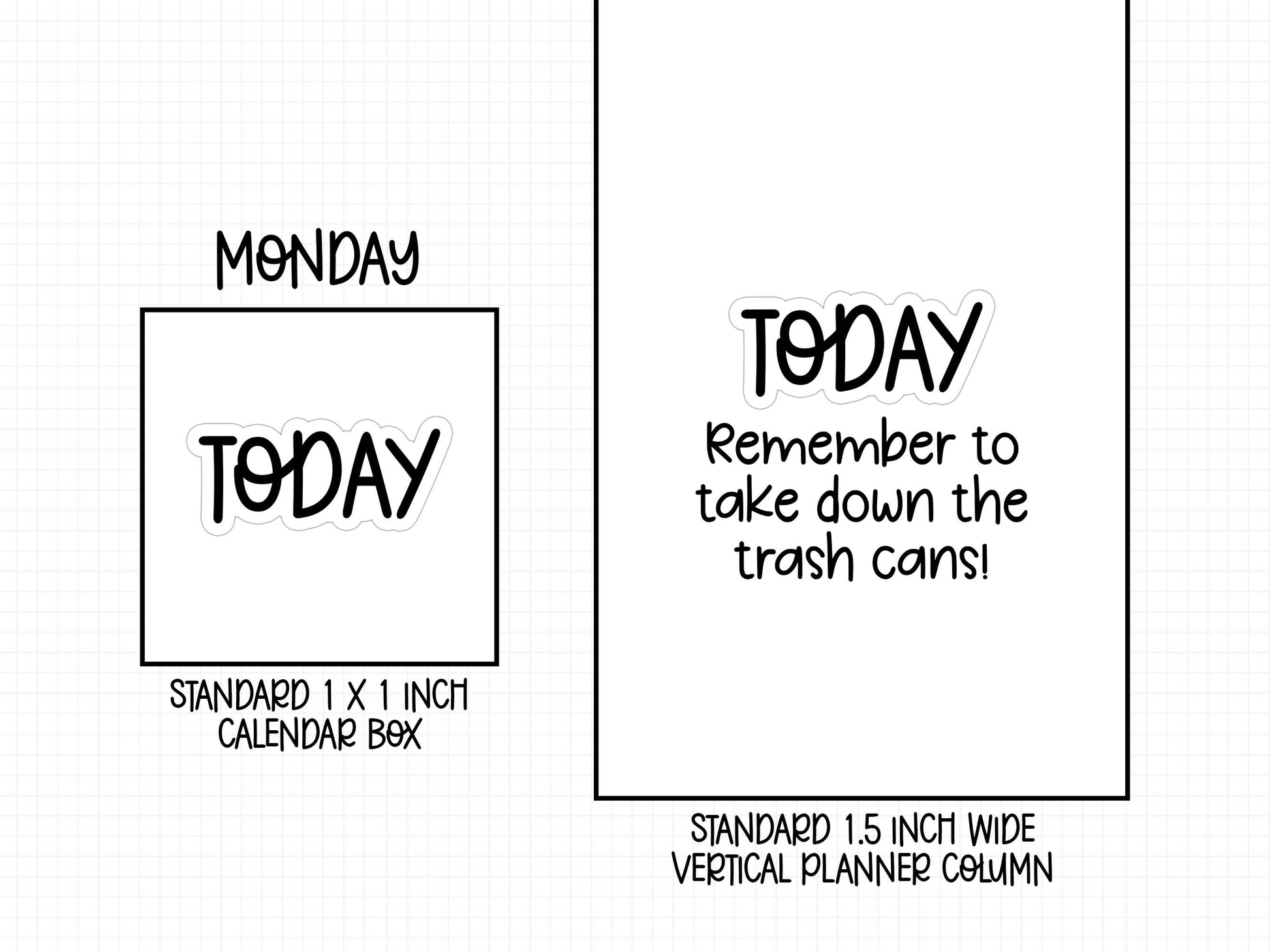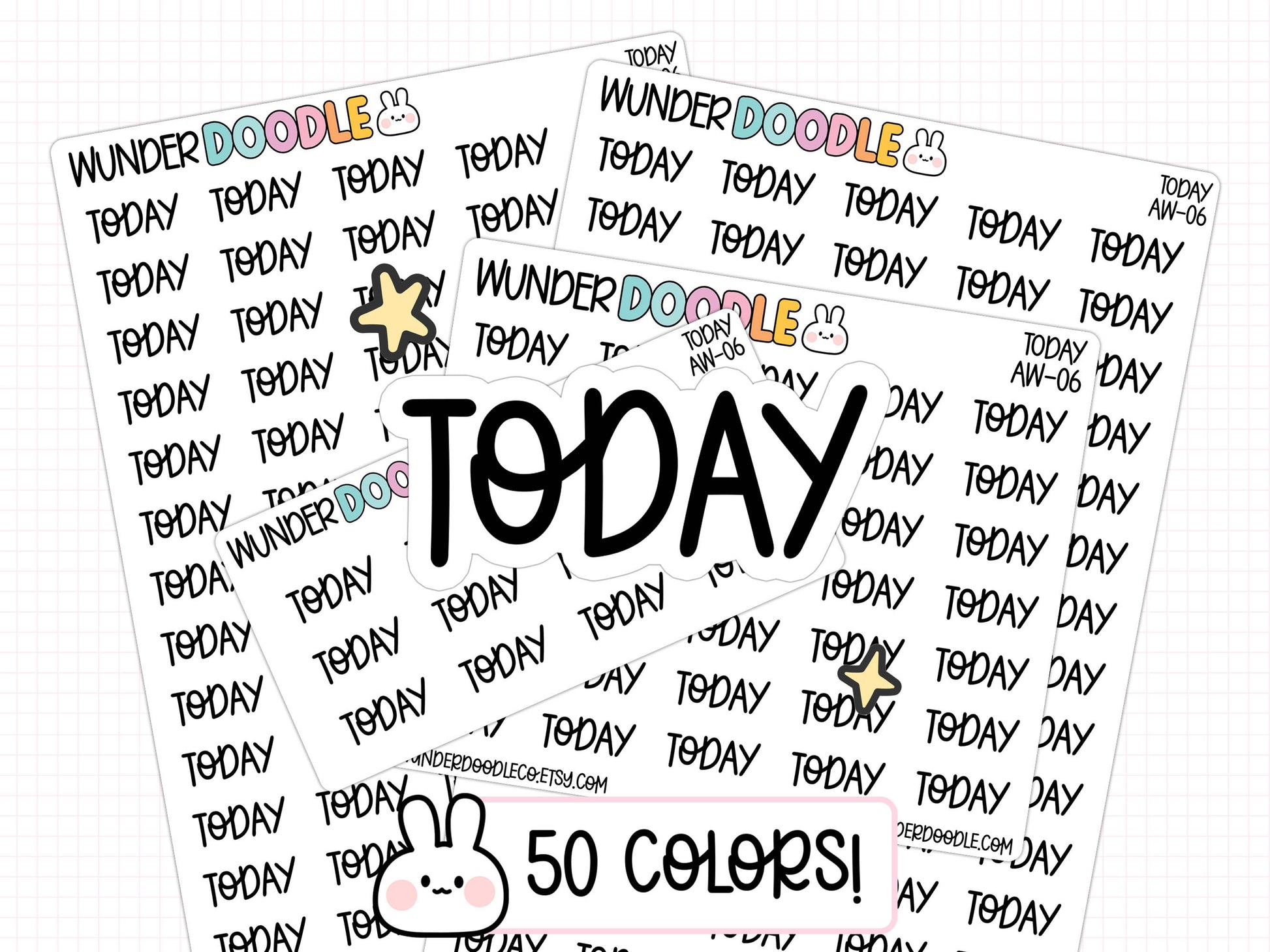 Say hello to your new daily essentials! Our "Today" planner stickers make staying on top of your schedule a little more stylish and a lot more fun. These stickers feature the word "today" in a charming, handwritten font, perfectly sized at 0.75 inches wide and 0.35 inches tall to fit your planners, journals, and to-do lists without hogging space. With a whopping 50 colors to choose from, you can match them to your mood, color-coding needs, or even your favorite pen. Whether you're jotting down tasks for work, school, or just life in general, these stickers bring a pop of color and a bit of personality to every page.