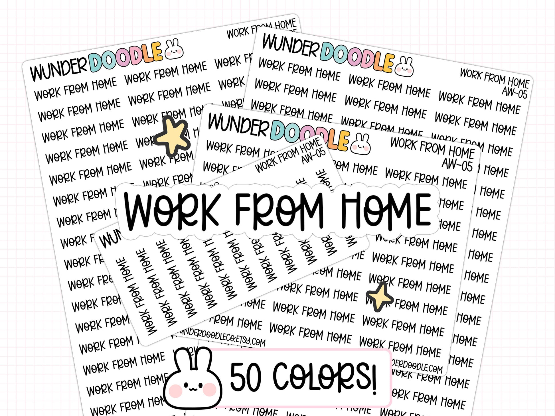 Hey, home-office hero! These work from home planner stickers are here to make remote life just a bit more colorful. Each sticker spells out "work from home" in an adorable, handwritten font, perfect for adding a little personality to your planner, journal, or calendar. With 50 colors to choose from, you can brighten up every day of the workweek (or, you know, procrastinate in style). Each sticker is a handy 1.4 inches wide by 0.45 inches tall—just right for adding flair without taking over your page.